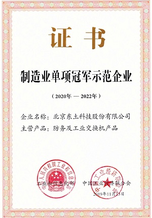 2019年11月27日,獲得工業(yè)和信息化部第四批制造業(yè)單項(xiàng)冠軍企業(yè)(產(chǎn)品)