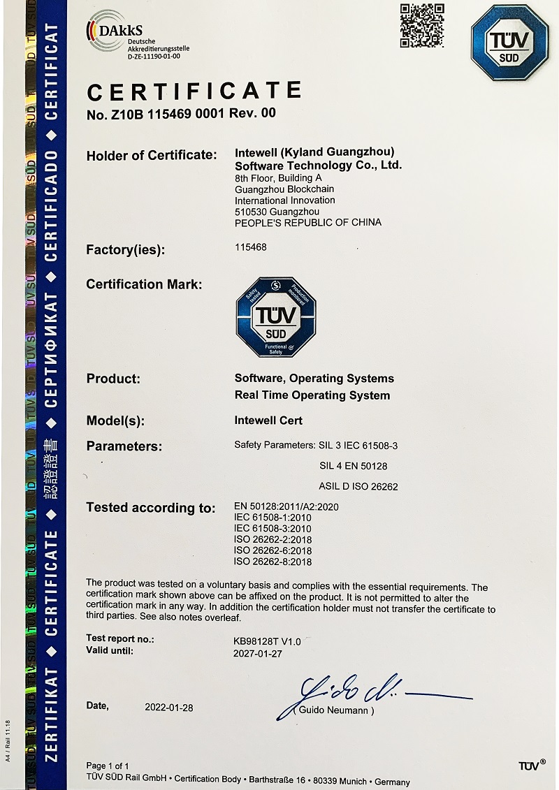 2022年2月, 通過TUV南德三項(xiàng)功能安全認(rèn)證