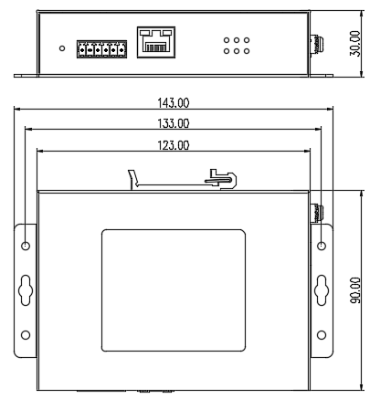 | 物理特性 | 外殼:金屬材質(zhì) 尺寸:123mm×30mm×90mm(W×H×D) 包裝尺寸:236mm×197mm×70mm 散熱方式:自然冷卻,無風(fēng)扇 防護(hù)等級(jí):IP40 安裝方式:壁掛,導(dǎo)軌 |