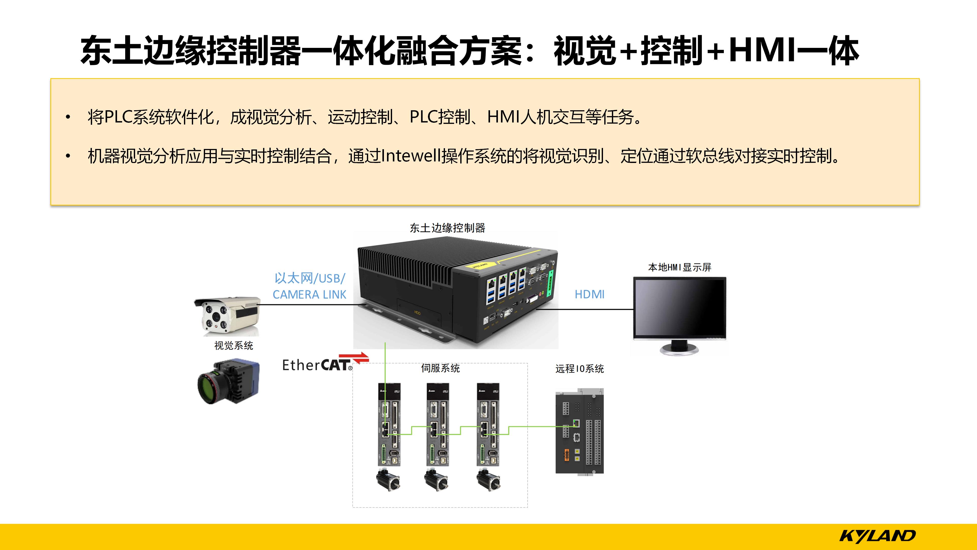 東土科技視控一體化解決方案將邊緣計算、機(jī)器視覺、人工智能、實時控制在邊緣側(cè)集成,實現(xiàn)現(xiàn)場實時控制與機(jī)器視覺之間的信息快速交互,助力工廠控制智能化。該方案適用于工業(yè)環(huán)境下的分析+控制場景,通過此方案可實現(xiàn)機(jī)器視覺與工業(yè)控制的深度融合。