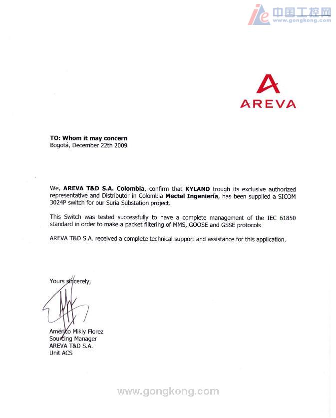 全球最大的核電企業(yè)阿?,m集團使用我公司獲得了KEMA認(rèn)證的SICOM3024P系列產(chǎn)品,在電網(wǎng)中使用后產(chǎn)品性能穩(wěn)定、品質(zhì)優(yōu)越,特給我公司頒發(fā)使用合格證書,并將長期使用我公司的產(chǎn)品。