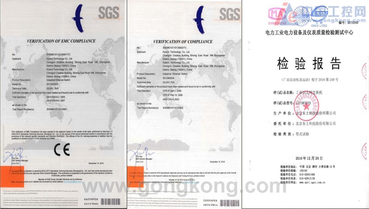 2010年12月23日 Sicom3009卡軌式網(wǎng)管型工業(yè)以太網(wǎng)交換機(jī)順利取得由SGS公司測試并認(rèn)證的CE/FCC報告;并在同時間取得電力工業(yè)電力設(shè)備及儀表質(zhì)量檢驗測試中心的型式試驗報告。
