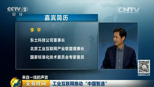 2016年4月18日,東土科技董事長(zhǎng)李平先生受邀參加CCTV2《交易時(shí)間》節(jié)目,并與中國(guó)信息通信研究院總工程師余曉暉先生就什么是工業(yè)互聯(lián)網(wǎng),工業(yè)互聯(lián)網(wǎng)如何推動(dòng)“中國(guó)制造”等問(wèn)題進(jìn)行了深入探討。