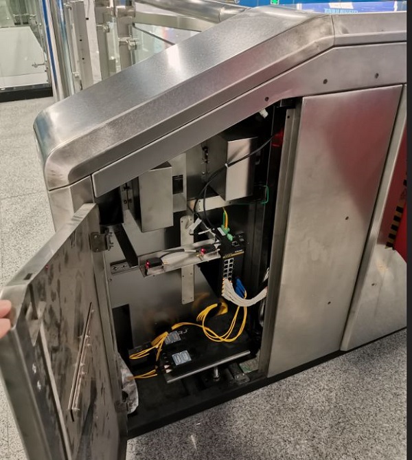 智慧城地鐵站共有A、B、C、D,4個(gè)出入口,各出入口分別設(shè)置一臺安檢機(jī),每臺安檢機(jī)安裝1臺東土公司經(jīng)過多年現(xiàn)場可靠運(yùn)行實(shí)踐檢驗(yàn)的第一代卡軌式工業(yè)交換機(jī),通過網(wǎng)線與中心機(jī)房設(shè)置的安檢系統(tǒng)工業(yè)交換機(jī)互連,中心核心工業(yè)交換機(jī)再通過千兆電口接入到智慧地鐵大平臺。出入口處的安檢機(jī)集成了安全及售檢票功能,過安檢的同時(shí),可進(jìn)行刷臉、刷指靜脈過閘。