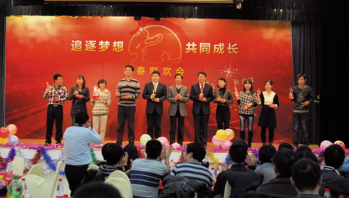 新春聯(lián)歡會(huì)在熱烈喜慶的音樂中拉開帷幕。首先,主持人帶領(lǐng)大家共同回顧了東土科技在2012年取得的驕人成績;接著,公司發(fā)展歷程中的一張張老照片在舒緩的背景音樂中呈現(xiàn)在全體員工的眼前,一幕幕感人的畫面歷歷在目,汩汩暖流涌上心田,正是東土人不畏艱難、不計(jì)得失、敢打敢拼的創(chuàng)業(yè)精神才推動(dòng)?xùn)|土的快速發(fā)展。為了表彰和鼓勵(lì)在2012年工作中表現(xiàn)優(yōu)秀的員工,公司董事長、總經(jīng)理李平先生為2012年度優(yōu)秀員工頒發(fā)了獎(jiǎng)杯及獎(jiǎng)金,祝賀他們在2012年度取得的優(yōu)異成績。