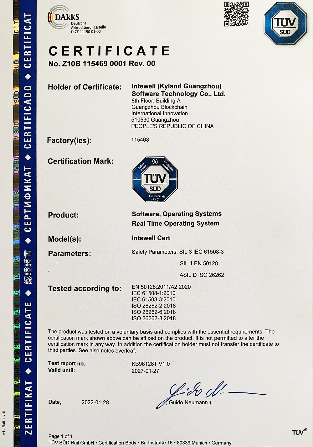 圖1:TÜV南德的認(rèn)證證書