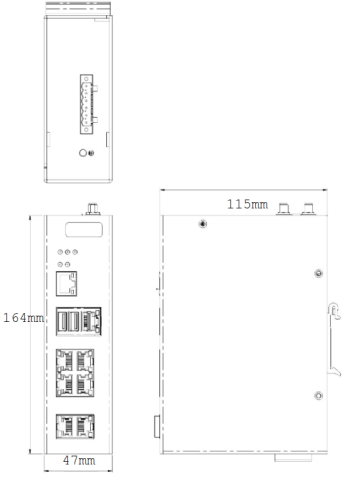 | 機械結(jié)構(gòu) | 外殼:金屬 重量:1.17kg(導軌式); 5.5kg-7kg(機架式) 尺寸(WxHxD): 47mm×164mm×115mm(導軌式) 440mm×44mm×440mm(機架式4GX6GE) 435mm×44mm×360mm(機架式2GX6GE) 440mm×44mm×440mm(機架式4GX14GE) 435mm×44mm×400mm(機架式4GX7GE) IP等級:IP40(導軌式);IP40(機架式) 散熱方式:無風扇自然散熱 安裝方式:導軌安裝(導軌式);1U機架安裝(機架式) |