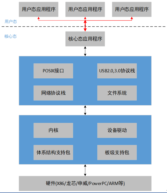 | 設(shè)備驅(qū)動(dòng)(Driver) | 設(shè)備驅(qū)動(dòng)(Driver)提供硬件設(shè)備驅(qū)動(dòng),針對(duì)硬件設(shè)備類型提供配套驅(qū)動(dòng)支持,將同類設(shè)備驅(qū)動(dòng)共性部分與板級(jí)支持包特性部分進(jìn)行分離,使在多硬件平臺(tái)下支持不同型號(hào)的同類設(shè)備更為方便、快捷 支持的設(shè)備驅(qū)動(dòng)包括:網(wǎng)卡,硬盤,USB,PCI,串口 |