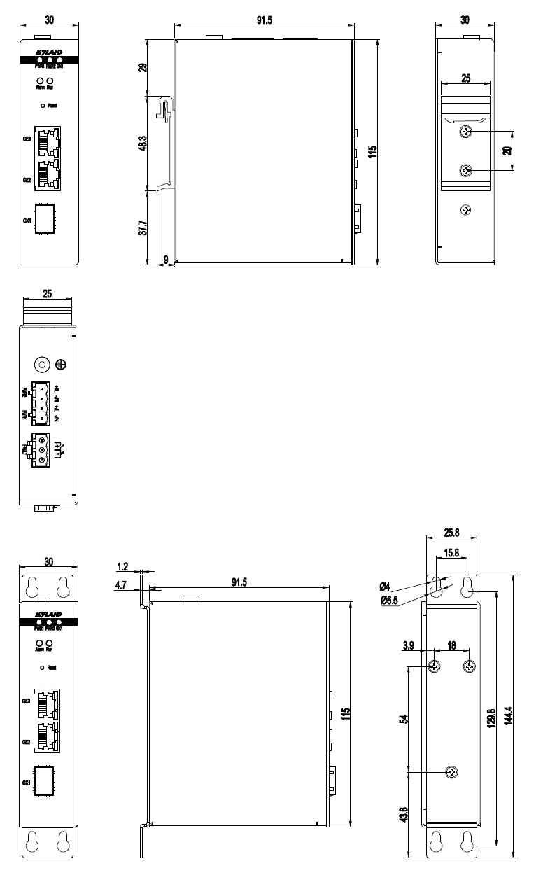| 機(jī)械結(jié)構(gòu) | 外殼 金屬材質(zhì) 散熱方式 自然冷卻,無風(fēng)扇 防護(hù)等級 IP40 尺寸 30mm×115mm×91.5mm(W×H×D) 重量 0.36kg 安裝方式 DIN卡軌式或壁掛式 |