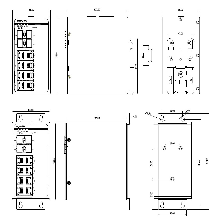 2SFP8T=2×100Base-X SFP接口; 8×10/100Base-T(X) RJ45電口
