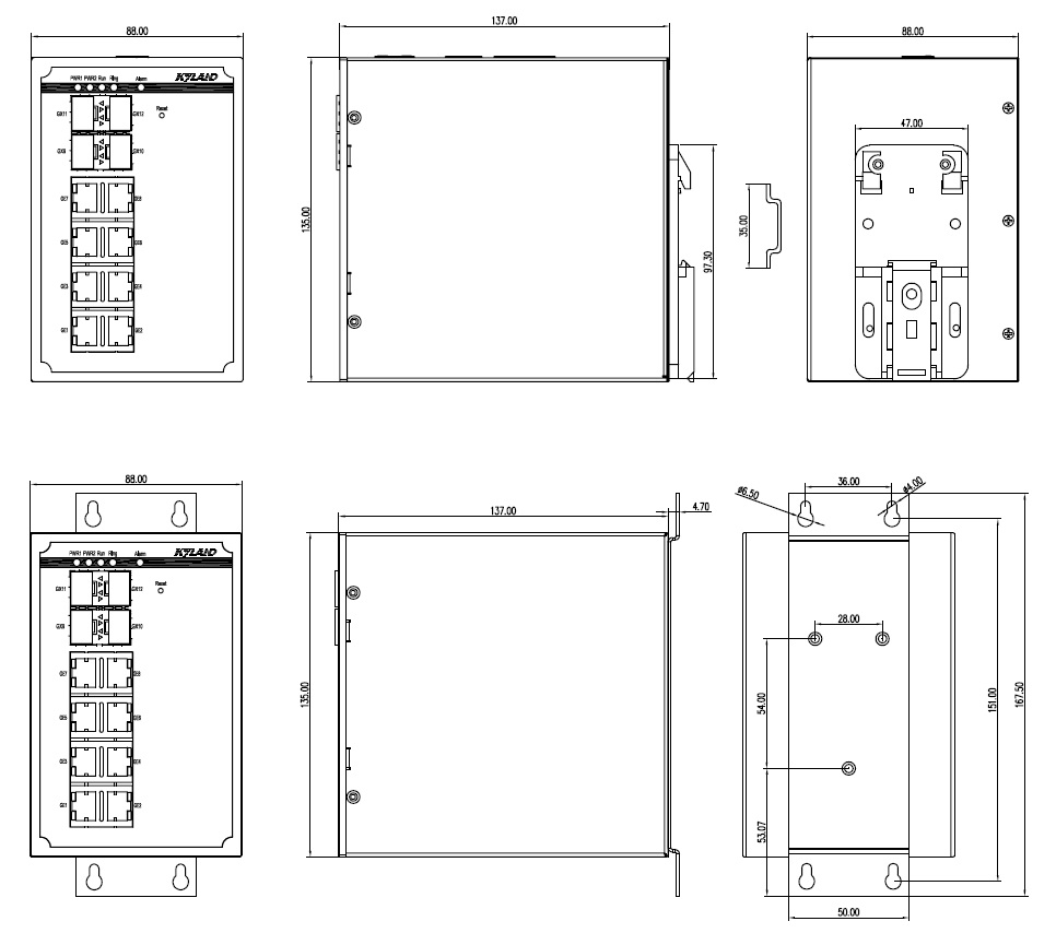 88mm×135mm×137mm (8GE,2GX8GE,4GX8GE) (W×H×D)