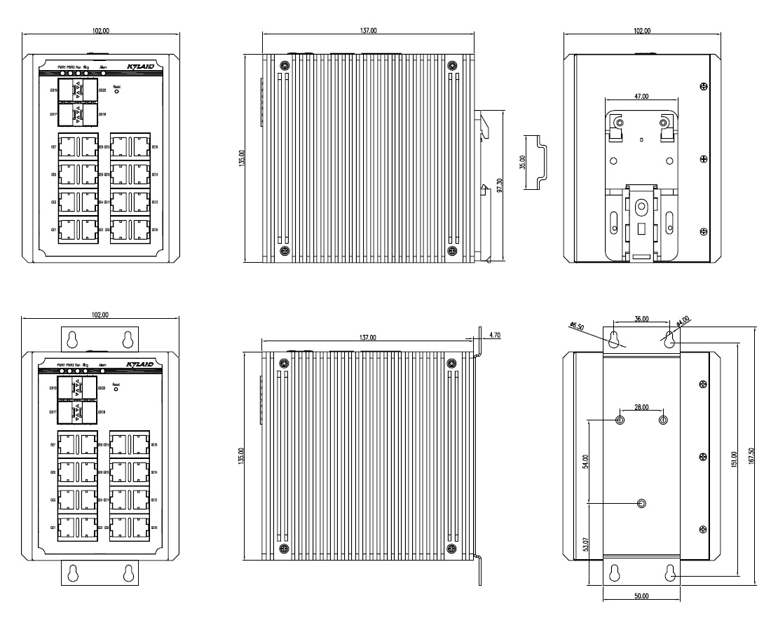 102mm×135mm×137mm (16GE,2GX16GE,4GX16GE,8GX8GE,12GX8GE) (W×H×D)
