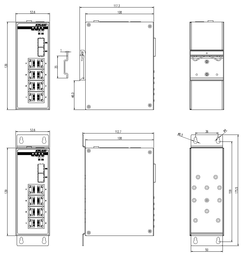 6×10/100Base-T(X) RJ45電口