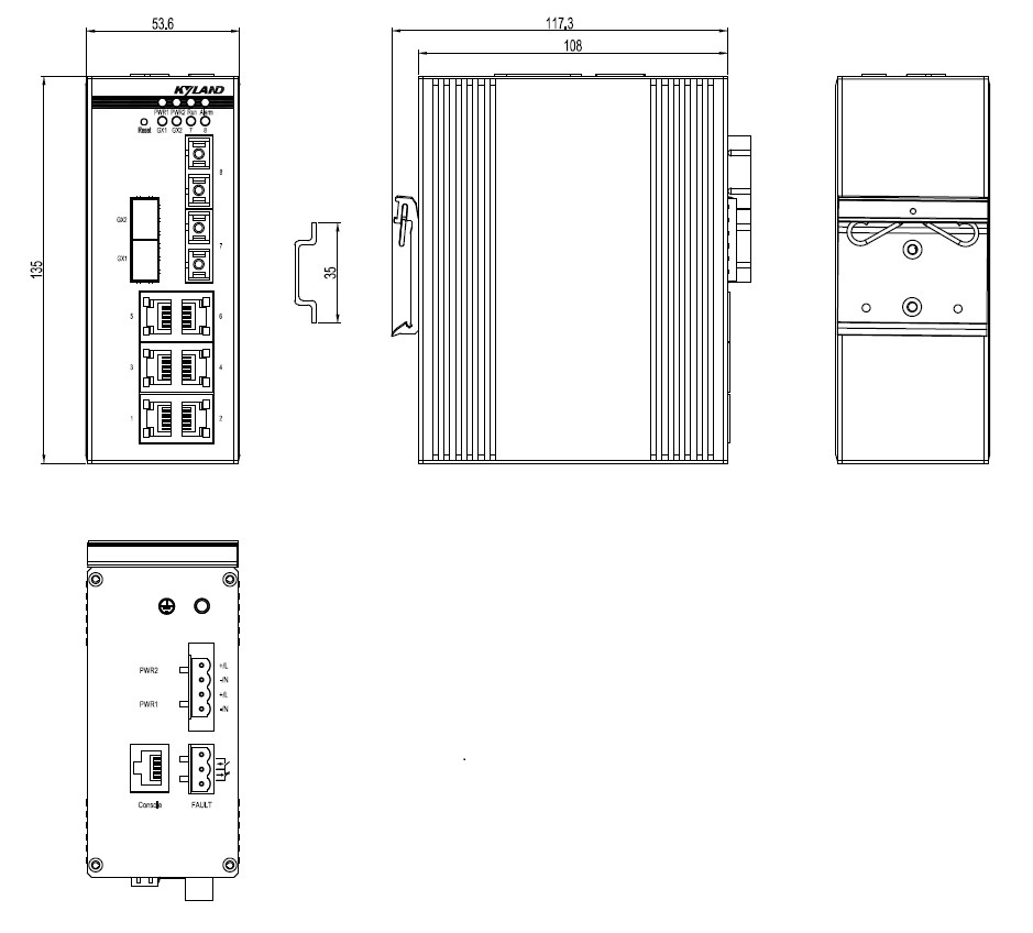 2×100Base-FX, 多模光口, SC接頭, 1310nm, 5km 6×10/100Base-T(X) RJ45電口 |