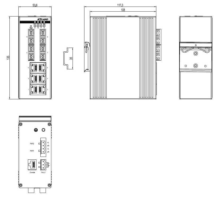 4×100Base-FX, 多模光口, SC接頭, 1310nm, 5km 6×10/100Base-T(X) RJ45電口 |