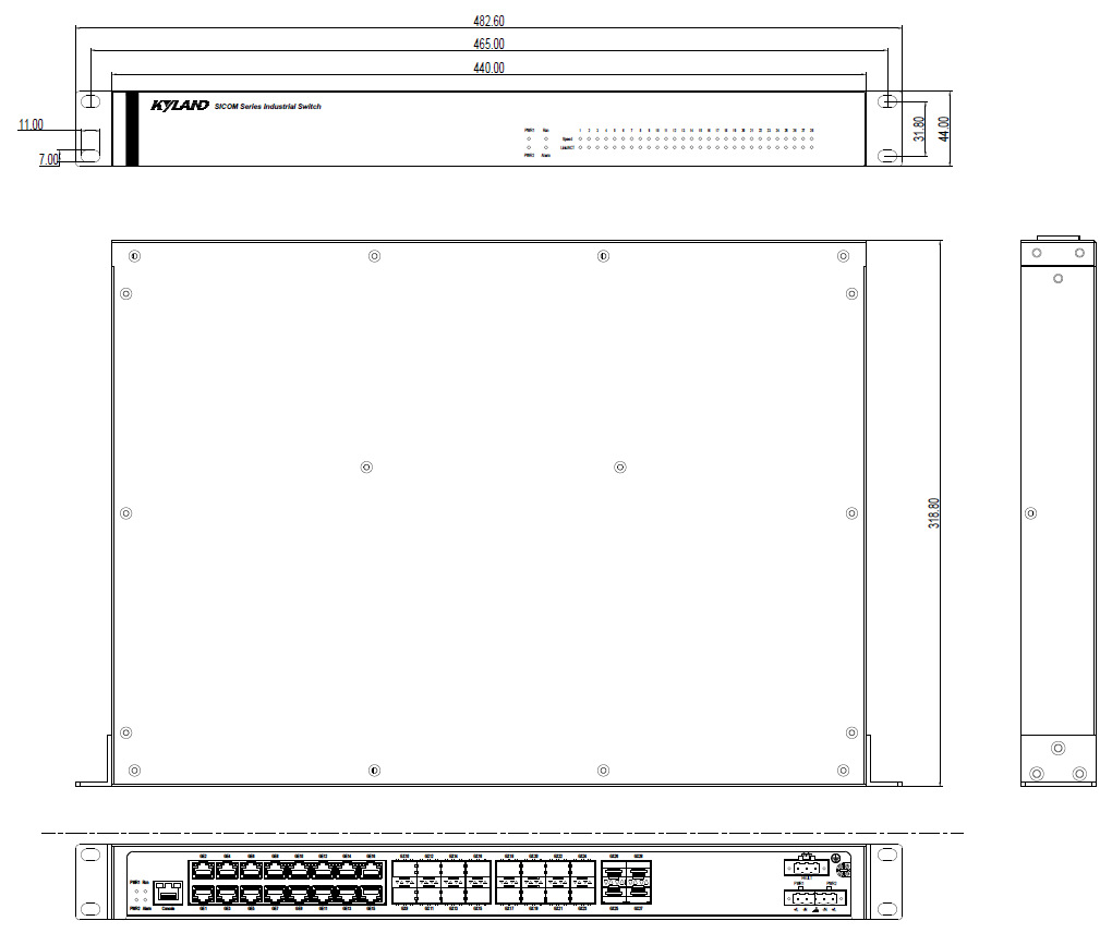 | 管理與維護(hù) | 支持命令行, WEB 管理方式 支持SNMPv1/v2c/v3,可通過Kyvision 集中管理 支持軟件升級 支持配置文件上傳下載 支持自動下載配置 支持電源告警, 溫度告警,IP/MAC 沖突告警, 內(nèi)存/CPU 利用率告警, 端口告警,環(huán)告警, 端口流量告警, CRC 及丟包率告警, SFP 接口接收光 功率告警和發(fā)送光功率告警 支持UDLD 連接監(jiān)測 支持LLDP 支持RMON 支持Syslog 支持DDM (SFP 接口) 支持端口鏡像 |