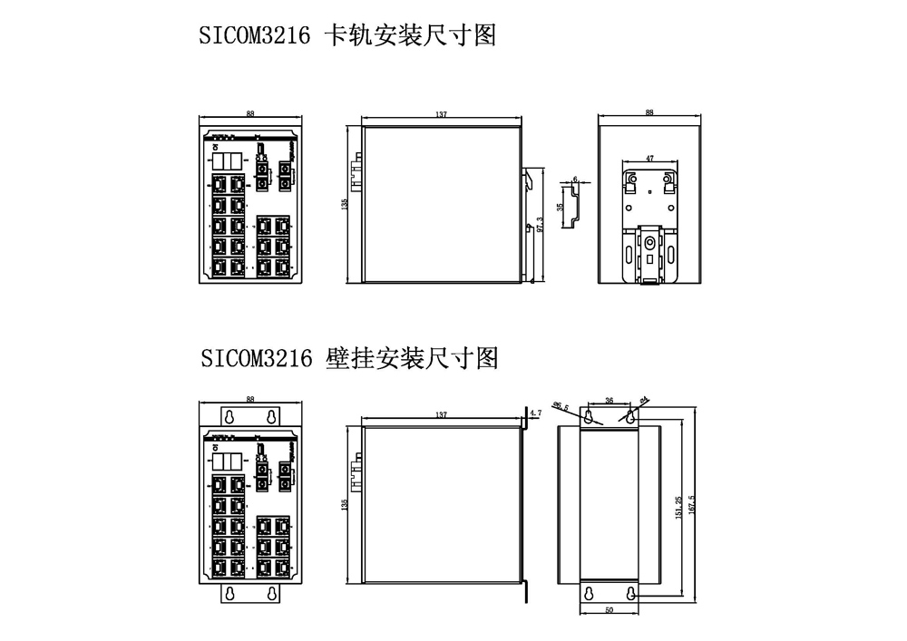 2G16T=2×1000Base-X,10/100/1000Base-T(X) Combo接口;16×10/100Base-T(X) RJ45電口