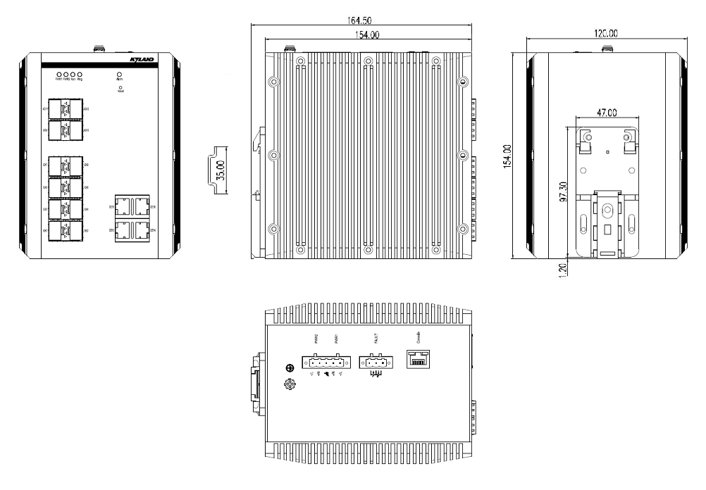 | 管理與維護 | 支持Console, Telnet, WEB管理方式 支持SNMP v1/v2c/v3, 支持DES和AES加密,可通過Kyvision集中管理 支持通過FTP/TFTP/HTTP/HTTPs進行軟件升級和配置的上傳下載 支持IP/MAC沖突告警, 電源告警, CPU/內(nèi)存利用率告警,端口link告警,端口流量告警,端口丟包率及CRC告警,環(huán)告警,接收及發(fā)送光功率告警 支持RMON(統(tǒng)計組,歷史組,告警組,事件組) 支持Syslog,可本地保存或上傳至日志服務(wù)器 支持端口鏡像和遠程鏡像端口 支持LLDP和LLDP MIB(802.1ab) 支持內(nèi)部硬件自檢 支持DDM光功率檢測功能 支持MTU配置 支持Ping, Trace route |
